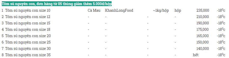 Bảng giá tôm sú sinh thái Cà Mau nhãn hiệu Khánh Long