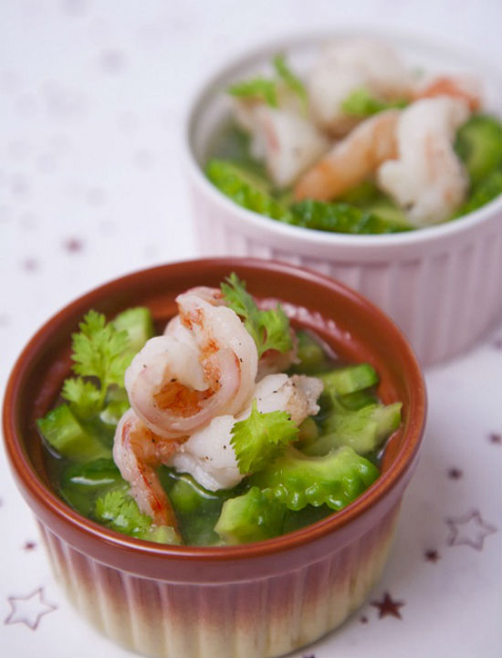 Mướp đắng cắt đôi, bỏ hạt, thái thành lát mỏng trộn đều với muối trong 10 phút để giảm độ đắng. Cho tôm sú xào cho đến khi săn lại rồi thêm nước vào, nêm nếm các gia vị cơ bản cho vừa khẩu vị. Thực hiện đúng qui trình, đảm bảo nguyên liệu tươi sạch sẽ cung cấp một bữa ăn vừa ngon miệng vừa tràn đầy dinh dưỡng.